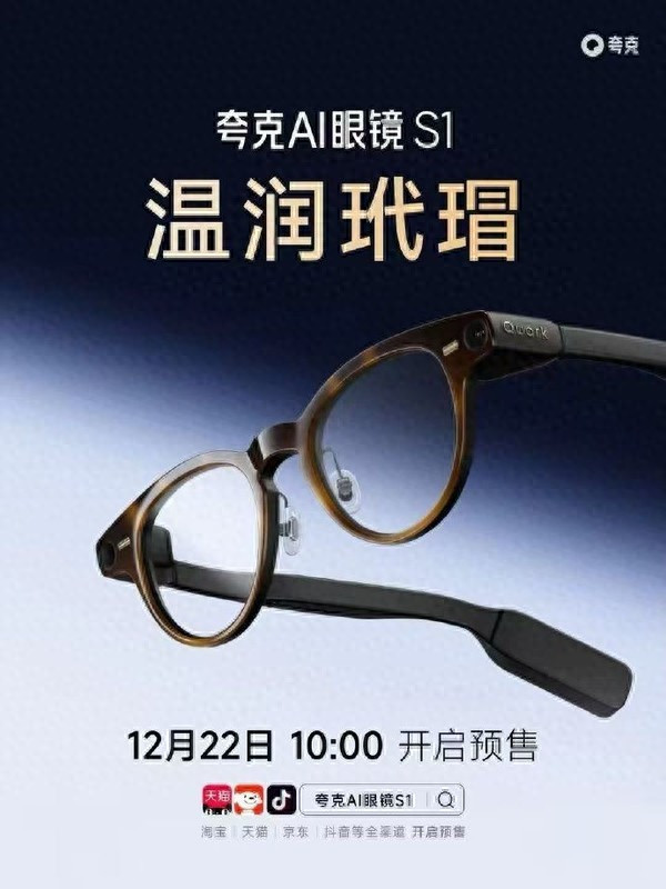 【CNMO科技音书】12月22日10:00,夸克S1新款智能眼镜郑重开启预售,该居品尺度套装官方补贴后售价3999元起,并内置AI助理“夸克同学”。