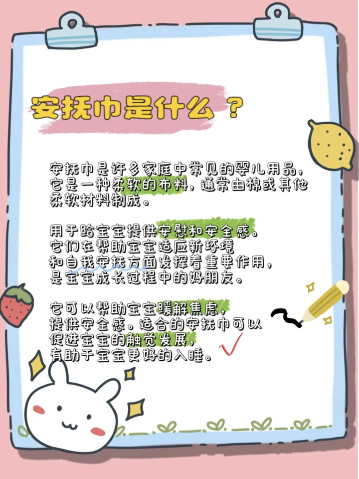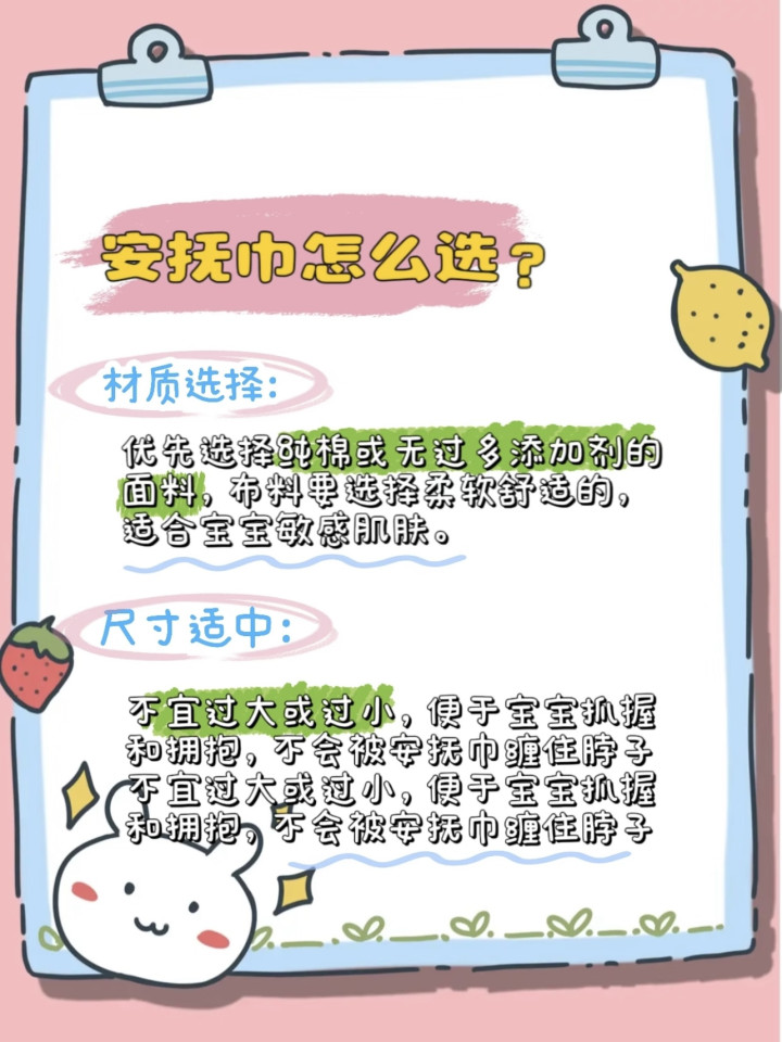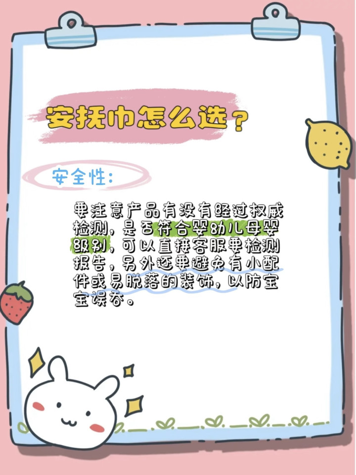 使用安抚巾技艺,要聘用无荧光剂、透气性好的纯棉或有机棉材质,幸免有纽扣、亮片、长流苏的式样,负责误吞或缠绕窒息,每周用婴儿专用洗衣液清洗,高温烘干或暴晒,若宝宝长牙期经常啃咬,可每天用滚水烫洗。诚然,不是总共宝宝皆买账!要是宝宝对安抚巾无感,不消免强,可尝试其他安抚物,如姆妈的旧T恤、柔滑的玩偶,跟着宝宝自我安抚才能增强(平日2-3岁),可渐渐减少安抚巾的使用场景,比如,先从白日不拿,再到只在睡前用,临了澈底脱离。